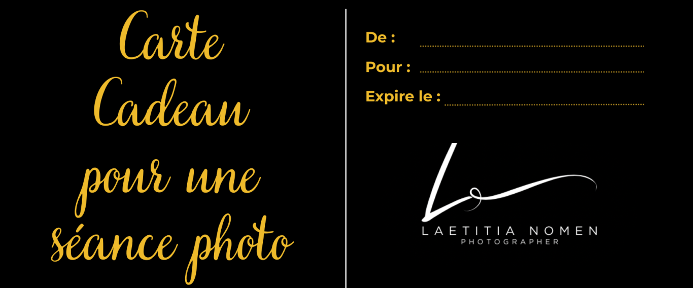 Vous cherchez un cadeau original et unique ? Les cartes cadeaux Laetiphotographer sont disponibles pour toutes les prestations : portrait, photothérapie, grossesse ou mariage. Un cadeau qui marque, qui touche, qui se vit — bien au-delà d'un objet.